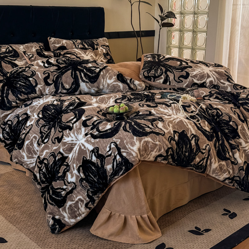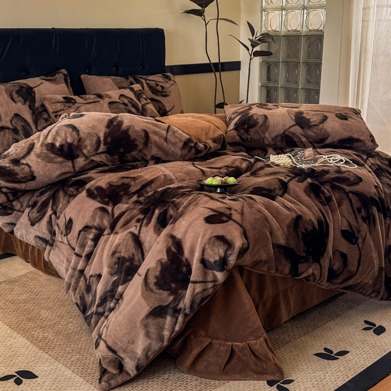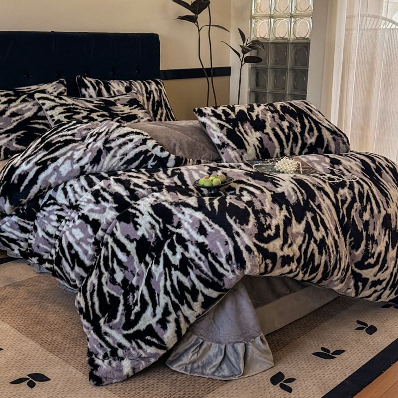 新款冬季兔绒四件套床单高级感牛奶绒加厚床上用品双人被套