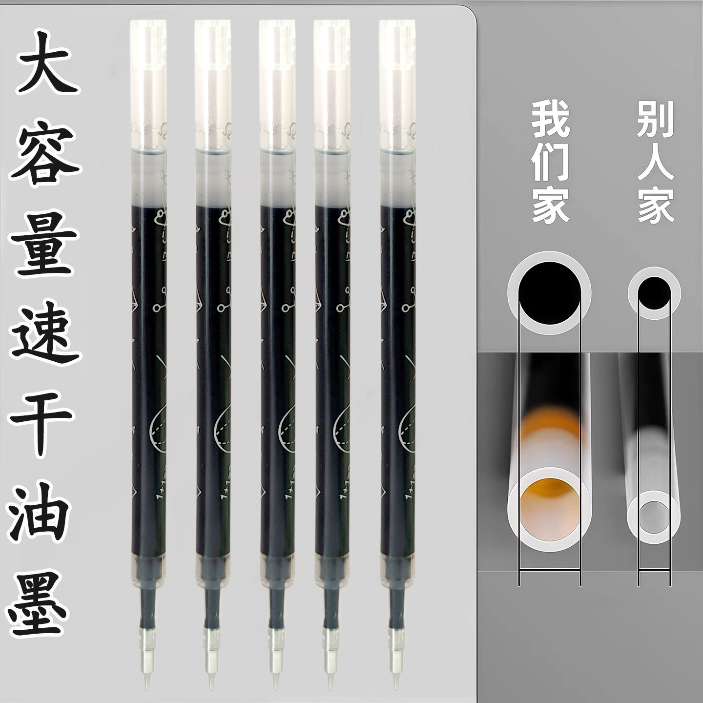 国风桶装刷题笔速干顺滑黑笔高颜值按动中性笔ST0.5黑色笔芯水性圆珠笔小学生专用考试笔非按斤卖碳素签字笔