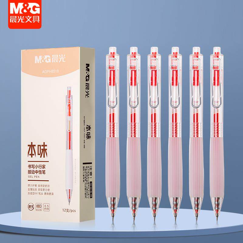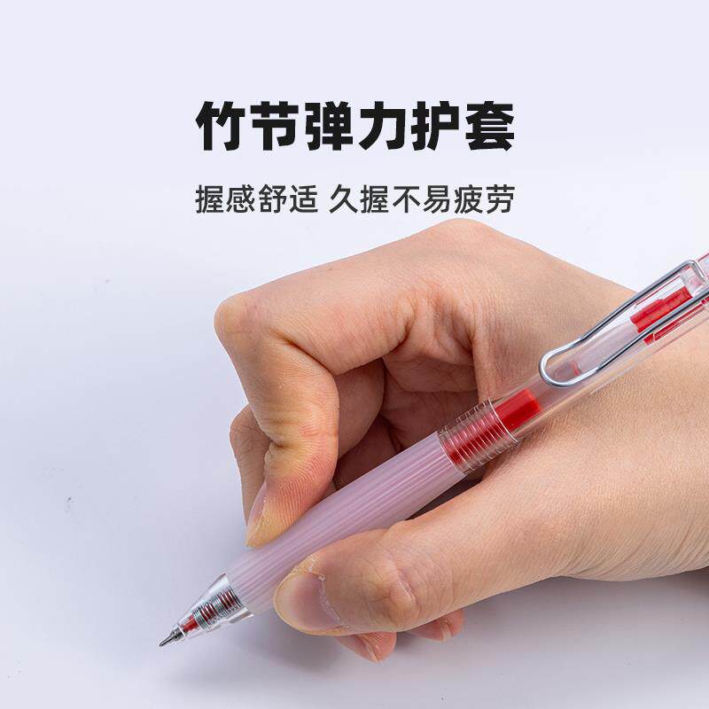 晨光本味书写小行家按动中性笔0.5mm黑红色全针管学生刷题笔H8518