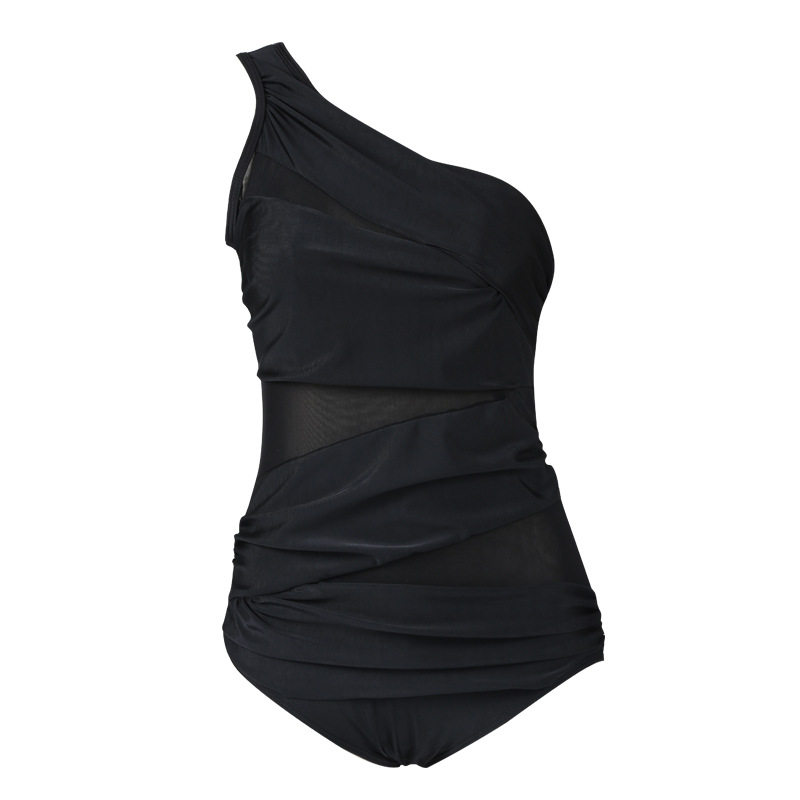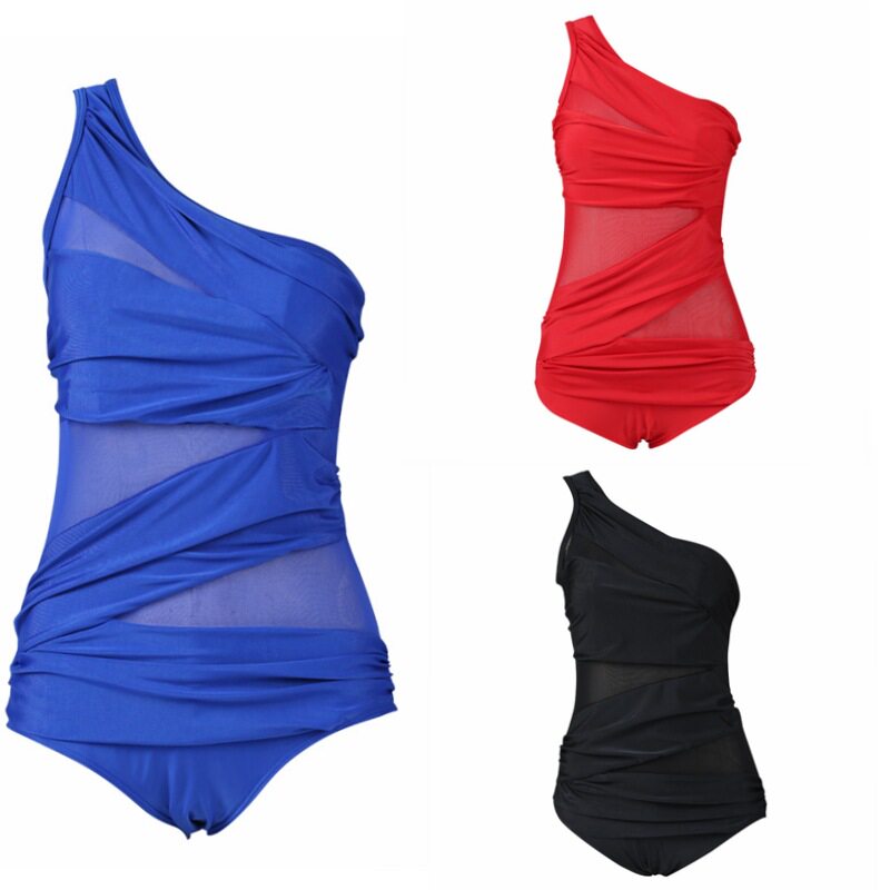 延朋 新款外贸斜网纱加肥加大泳装欧美连体比基尼泳衣女大码泳衣