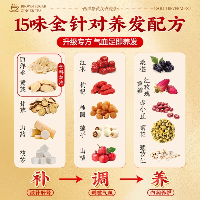 黄芪当归党参红枣桂圆枸杞茶调理补气养血女人养生茶包适合女生喝