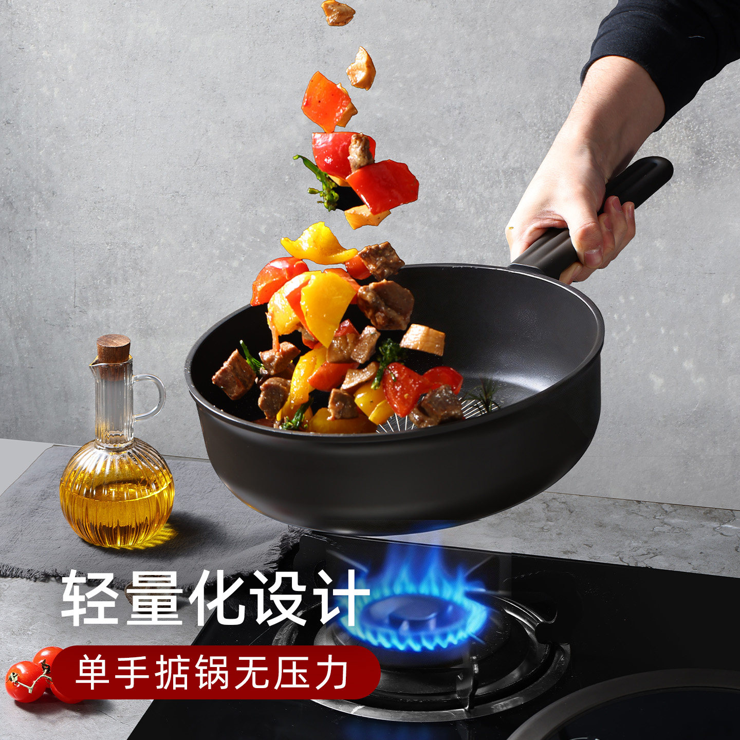 韩国麦饭石不粘锅炒锅家用原装进口电磁炉燃气灶专用不沾锅炒菜锅
