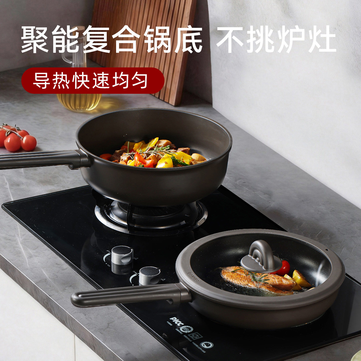 九阳陶瓷不粘锅钛锅家用平底炒锅电磁炉专用炒菜锅官方旗舰正品炊
