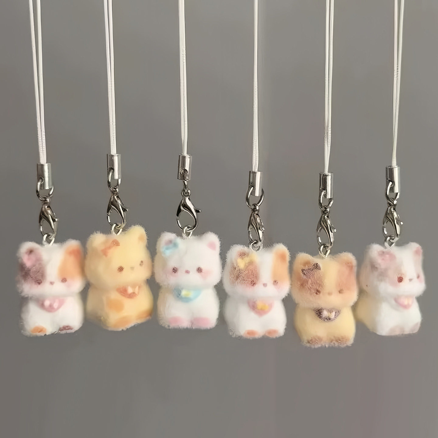 可爱植绒猫咪手机绳立体树脂钥匙链挂件手机挂饰包包情侣闺蜜礼物