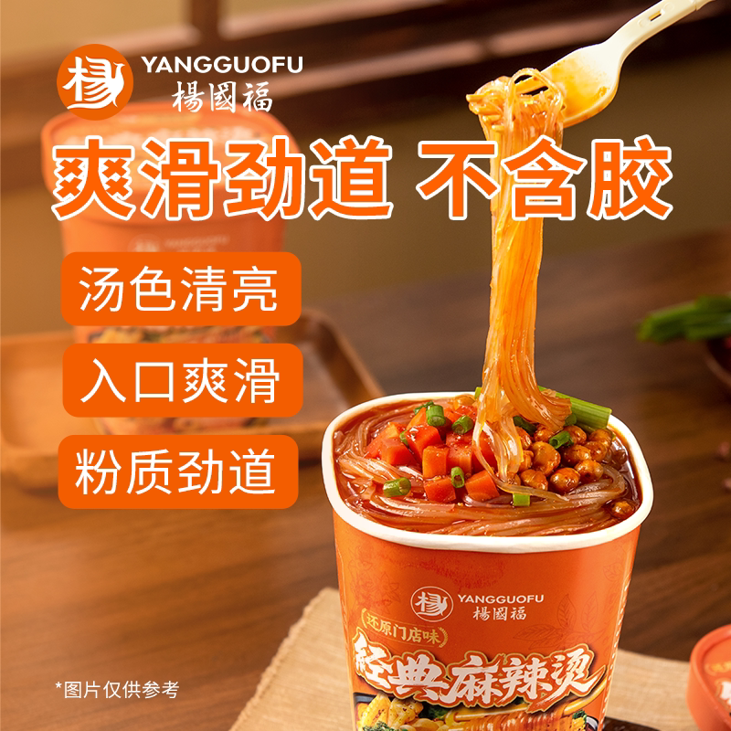 杨国福麻辣烫红薯酸辣粉桶装速食整箱6桶冲泡粉丝夜宵方便食品