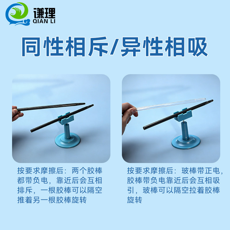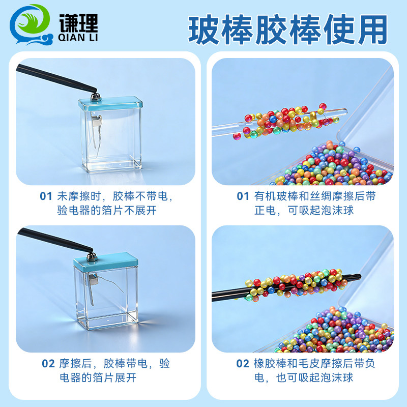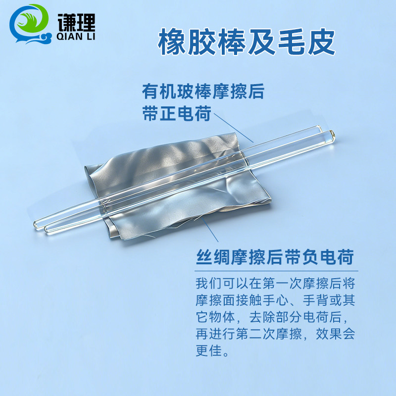 老师推荐静电感应实验套装摩擦起电实验材料摩擦棒橡胶棒毛皮有机玻璃棒玻棒丝绸箔片验电器器材小学科学教具