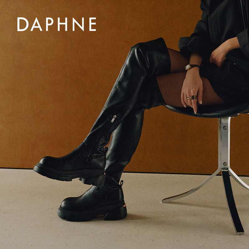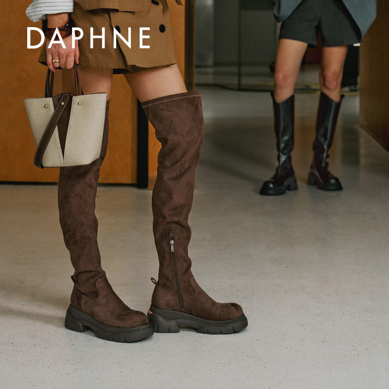 达芙妮云软过膝靴女2025新款秋冬时髦厚底瘦瘦靴增高弹力靴子女