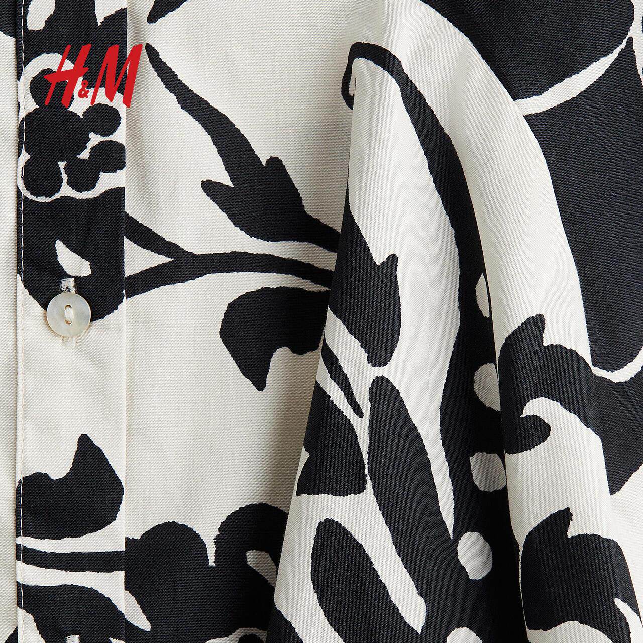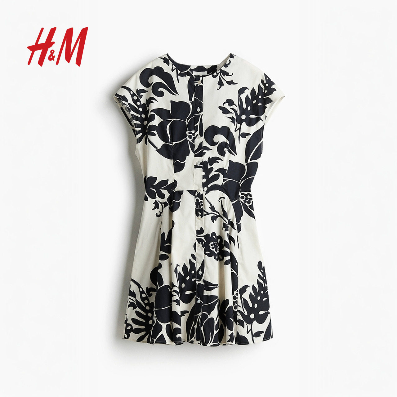 HM女装春季时尚连衣裙正面系扣棉质连身裙1278034