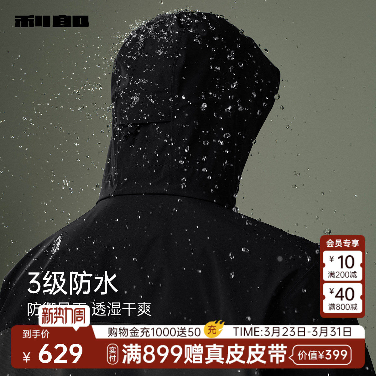 【防水/薄款】利郎官方 风衣男士撞色拼接连帽春秋款新款外套男