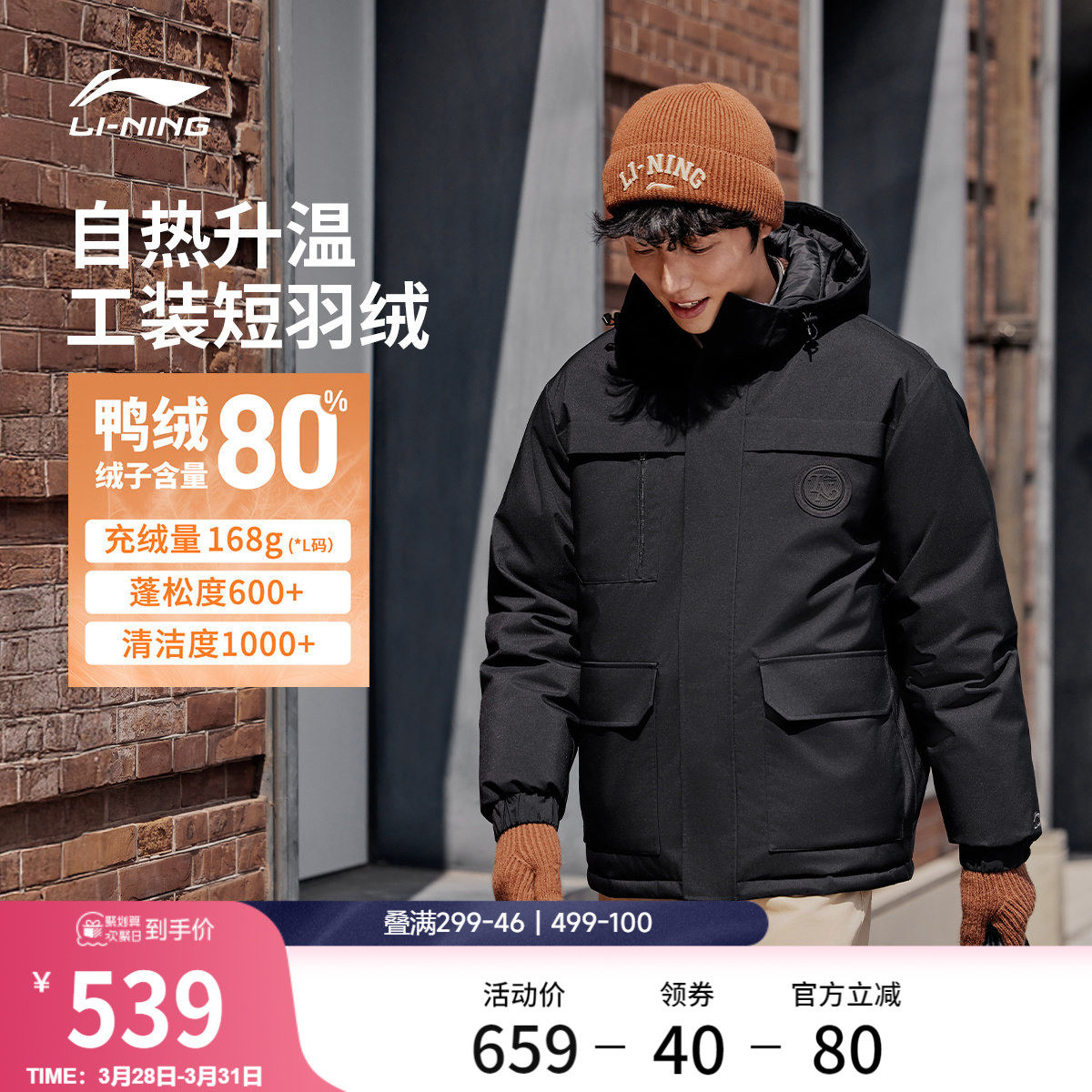 李宁航天动态保暖羽绒服男冬季官方新款连帽衣服短款工装运动外套