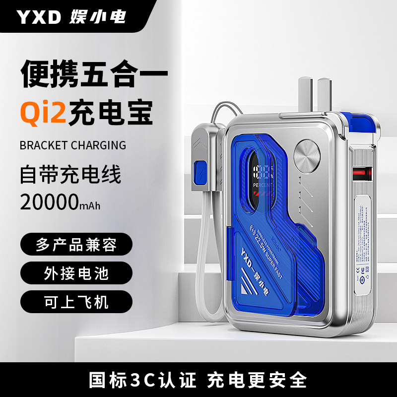 娱小电磁吸无线充电宝超级快充PD插头五合一qi2两万外接电池支架