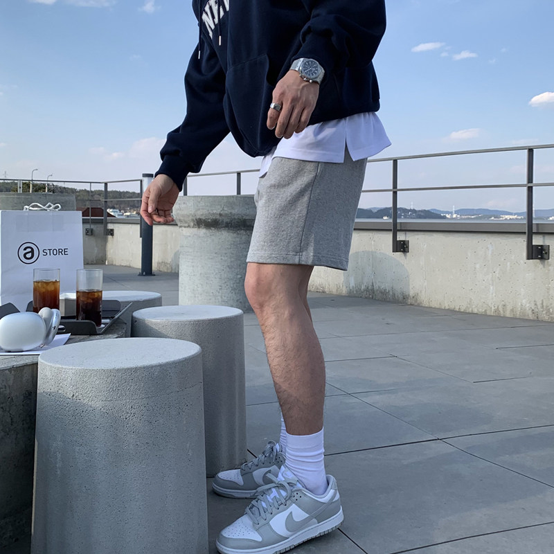 名创优品青少年短裤男女同款春夏季华夫格直筒宽松运动五分中裤Y