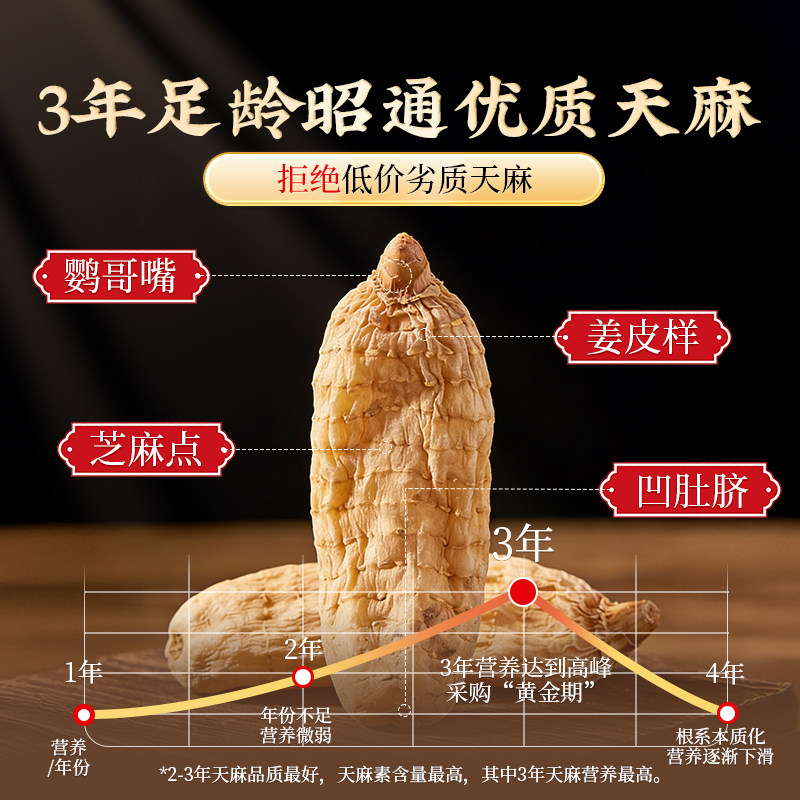 天麻干货天麻片野生特级新鲜中药材云南昭通正品天麻粉官方旗舰店