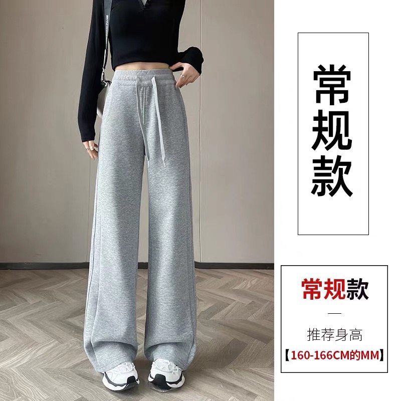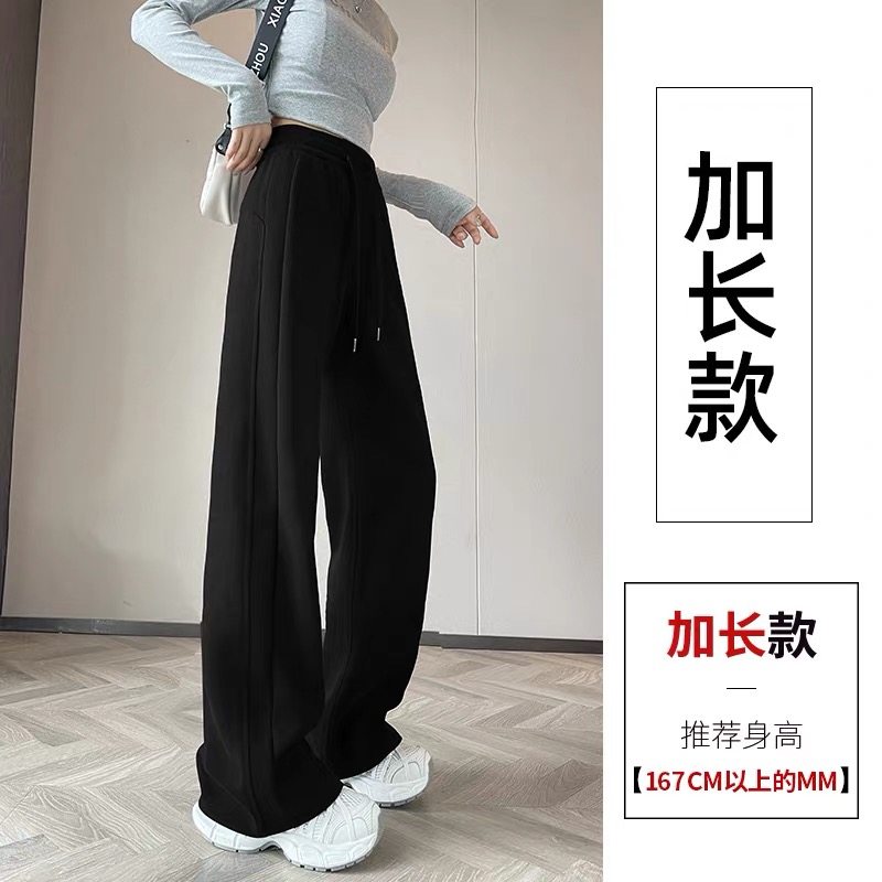 藏青色美式运动裤女秋冬2025新款高腰垂感休闲宽松阔脚裤直筒卫裤