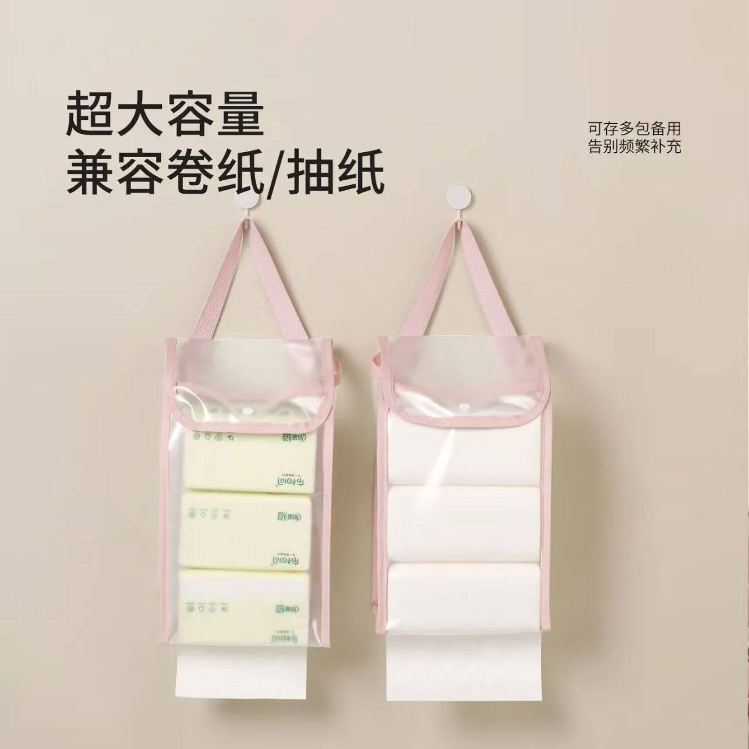 壁挂式纸巾收纳挂袋家用宿舍浴室悬挂防水卫生间挂式神器透明可视