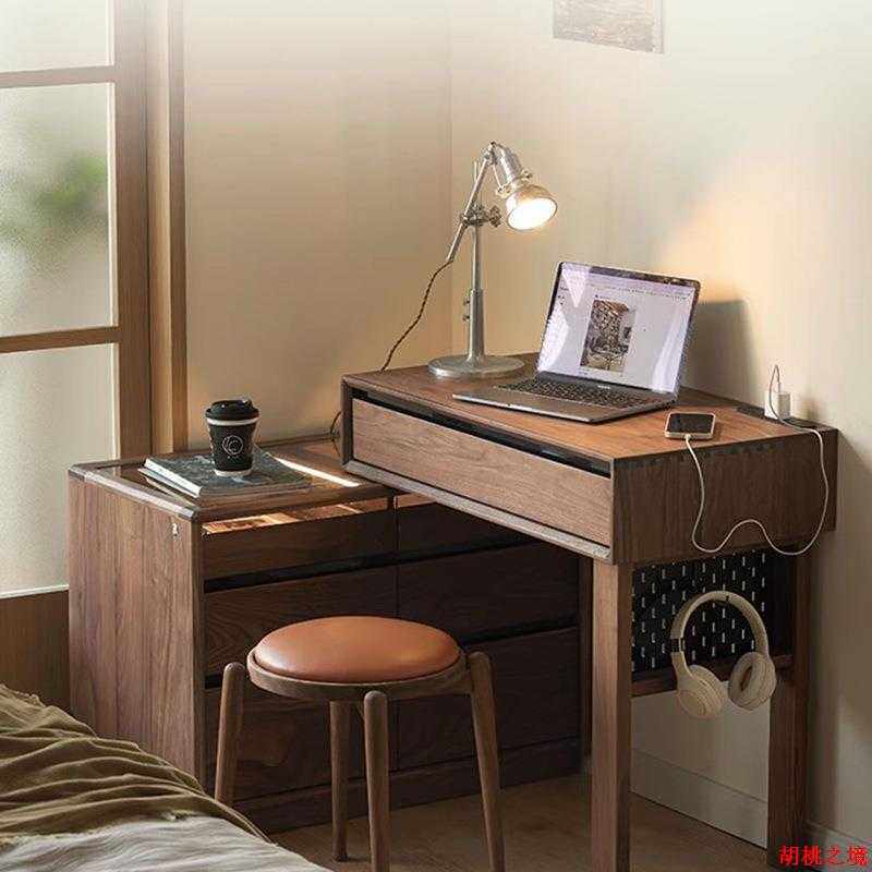 北欧实木黑胡桃木梳妆台斗柜一体简约日式樱桃木化妆桌卧室收纳柜