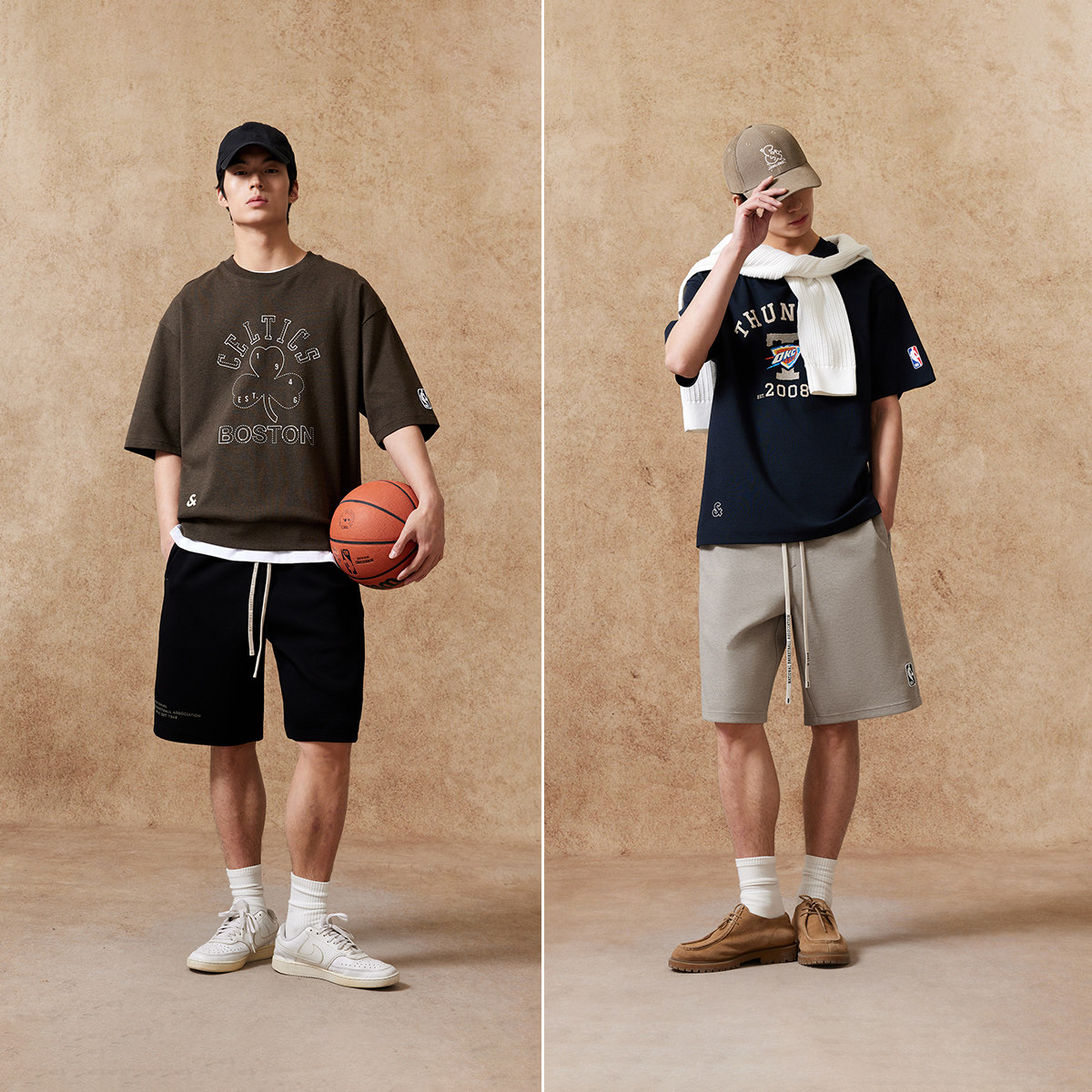 廓形版型;单侧NBA联名外缝刺绣logo