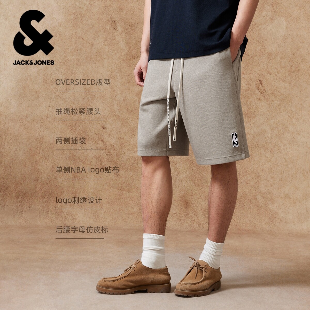 杰克琼斯NBA联名春夏季男装短裤廓形裤子两侧插袋后侧皮标时尚潮