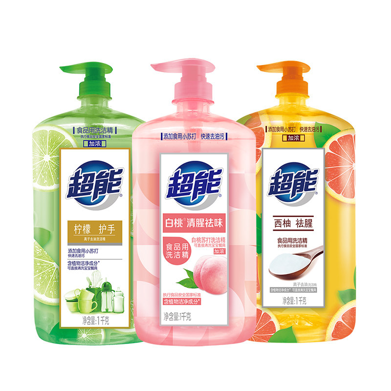 超能洗洁精白桃去腥家用实惠装按压瓶厨房祛味去油洗碗液官方正品