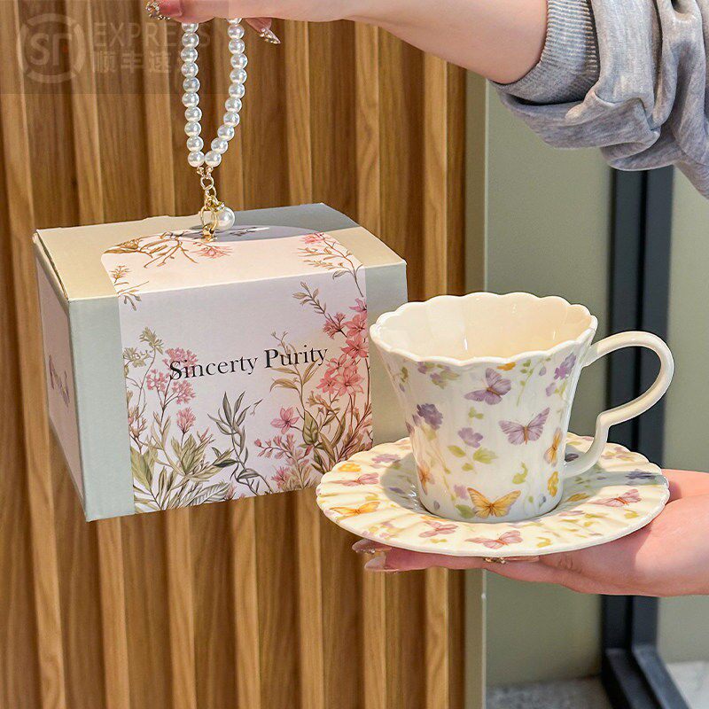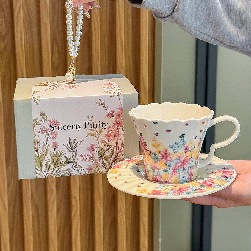 复古繁花陶瓷咖啡杯碟礼盒下午茶拿铁马克杯送女生生日礼物伴手礼