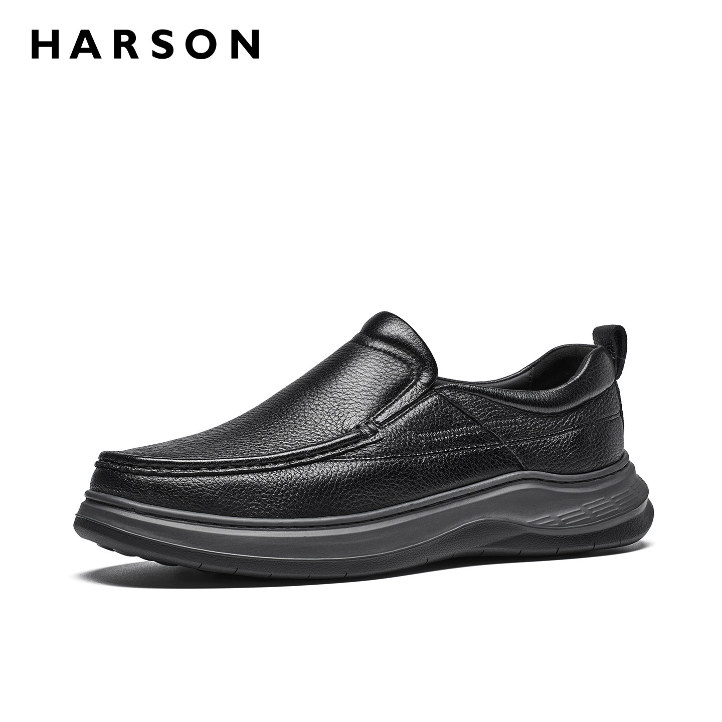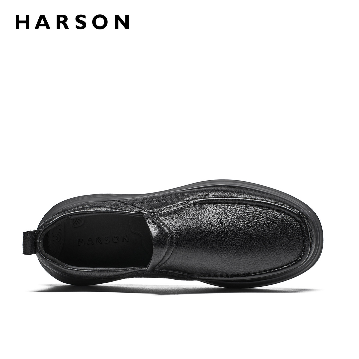 哈森男鞋春季一脚蹬懒人皮鞋男增高软底真皮爸爸鞋商务休闲皮鞋男
