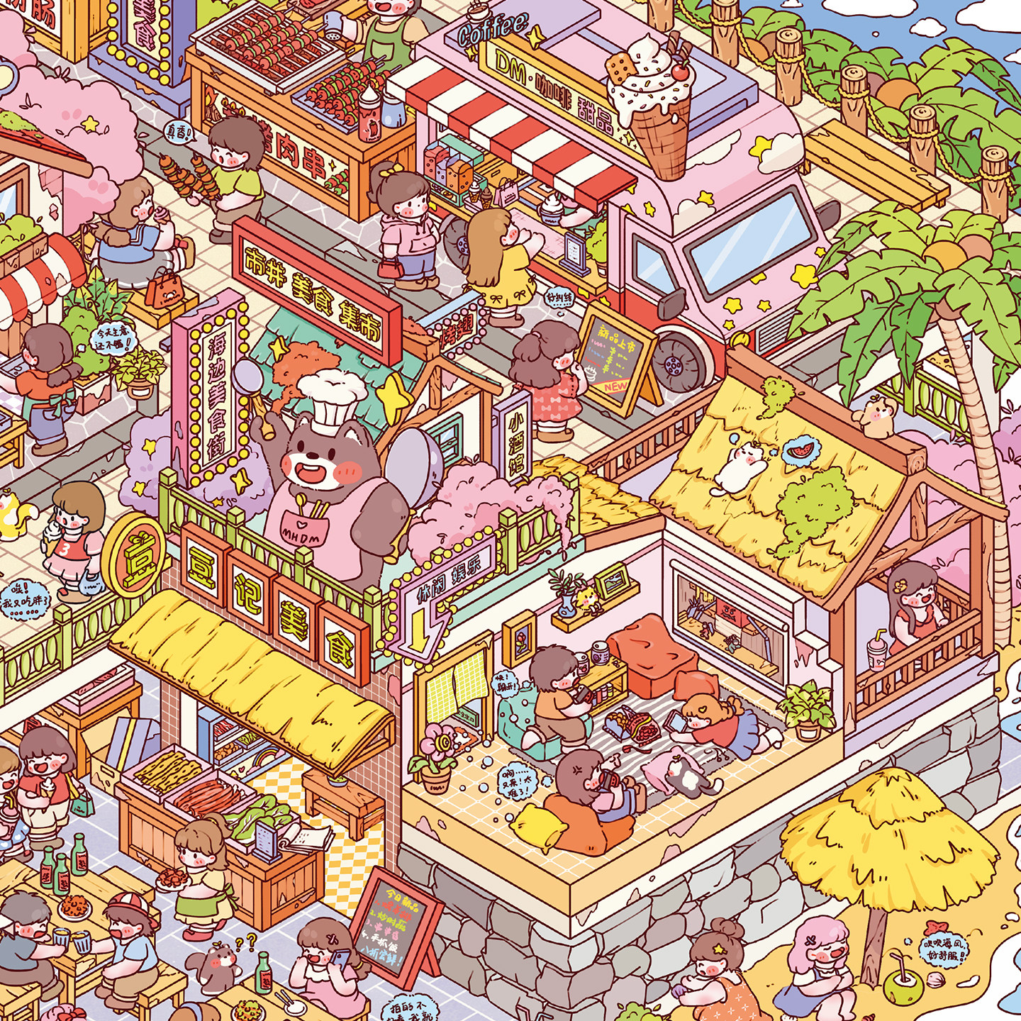 雀实利害美食街造景贴纸利胜12.0系列雀麦小吃街高难度微缩场景3D立体小屋贴画手帐儿童玩具女孩元旦新年礼物
