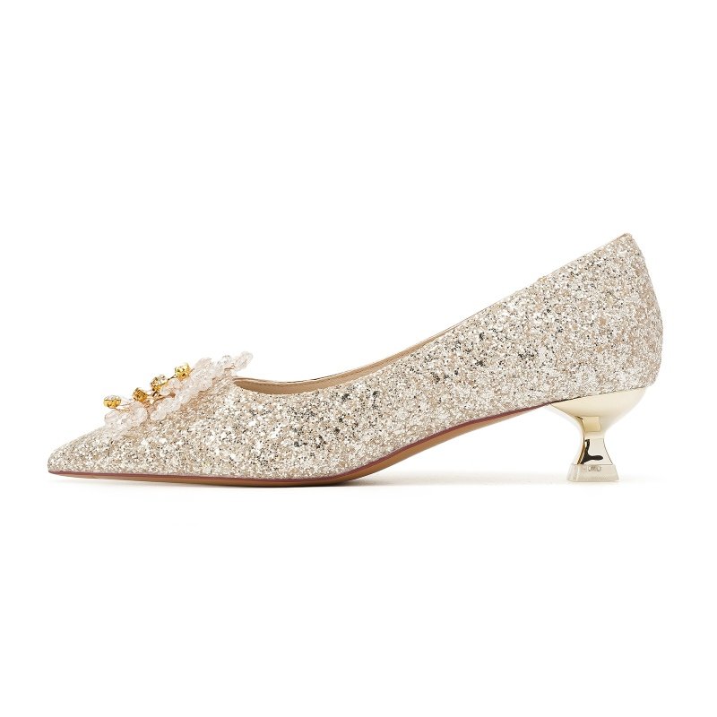 法式尖头水晶花婚鞋女秀禾婚纱两穿不累脚亮片高跟鞋日常可穿单鞋