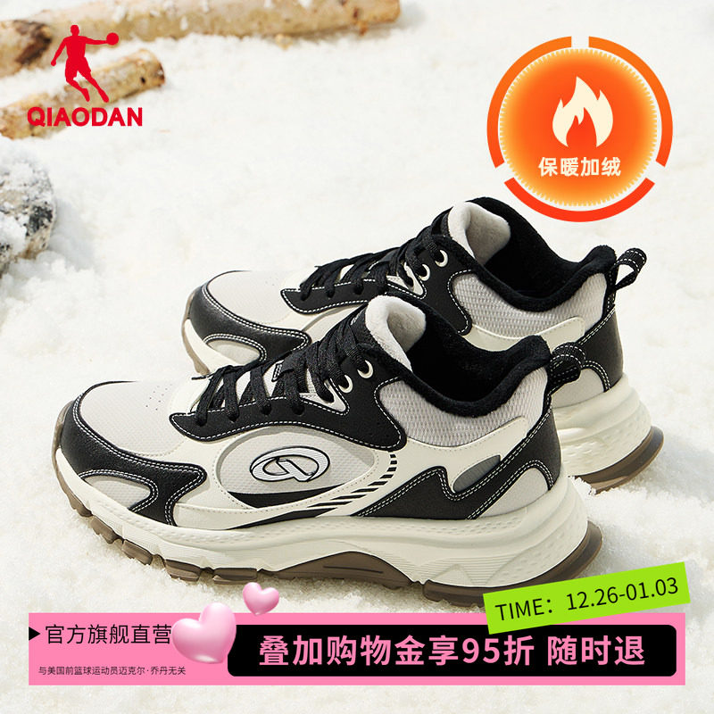 乔丹小千禧皮面防水休闲鞋女2025新款加绒保暖老爹鞋学生运动鞋子