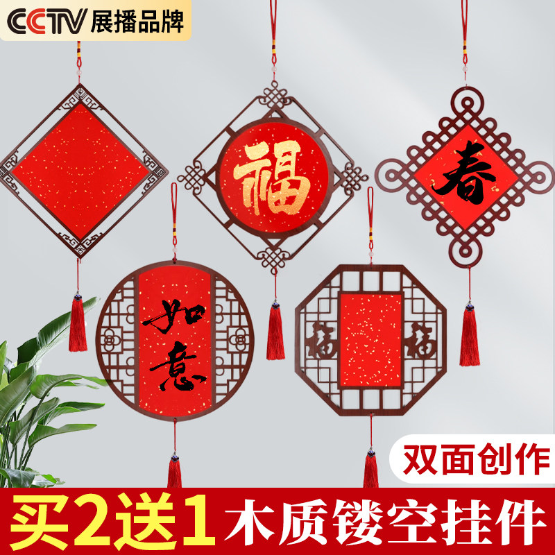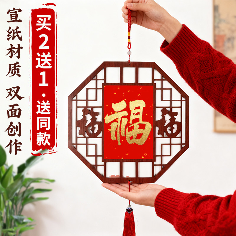 新中式创意木质镂空挂件万年红洒金福字空白福字红纸手写专用红纸灯笼春节喜庆装饰福字纸挂件书法宣纸斗方