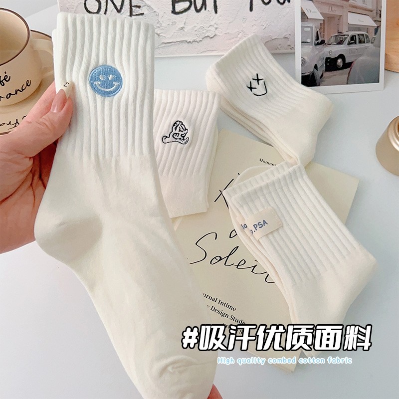 袜子纯女生夏款中长筒袜白色潮ins运动可爱透气春秋季中筒吸汗