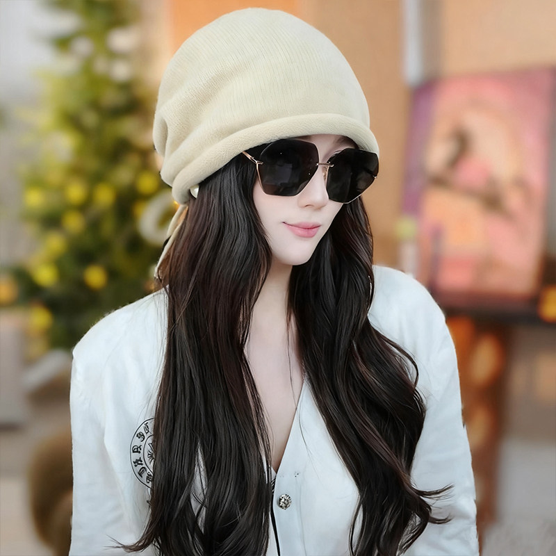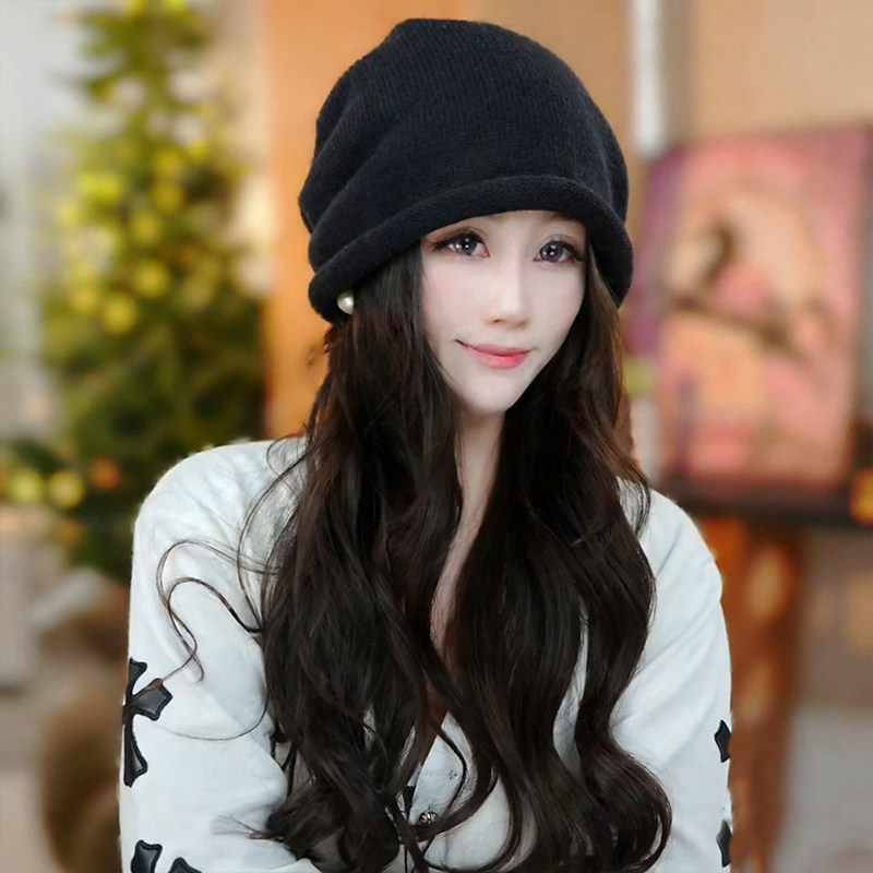 冬季保暖帽子女2025新款大头围显脸小针织毛线帽加厚冷帽黑色红色