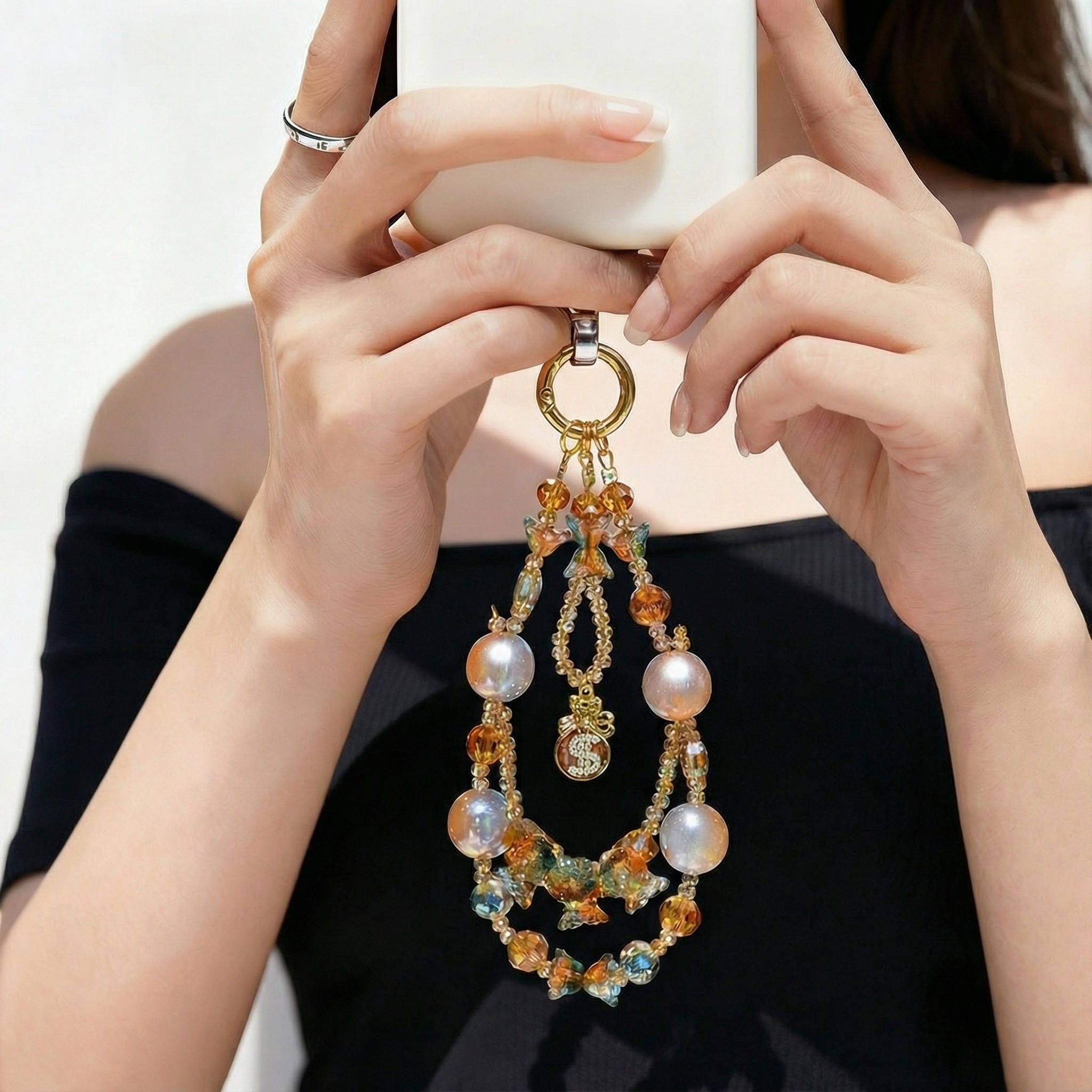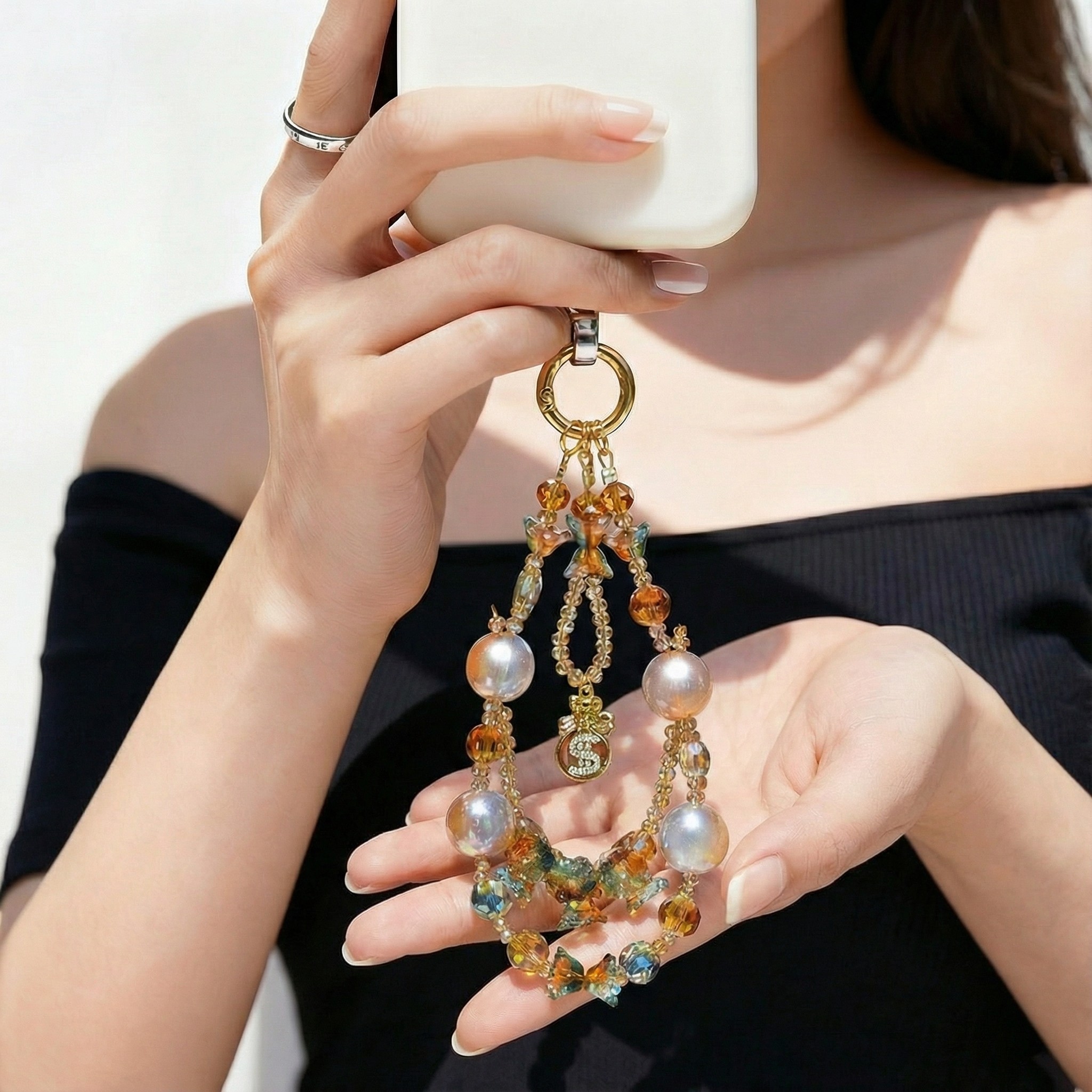 国潮水晶珍珠手机链轻奢小众精致高级感挂手腕挂绳挂饰配件挂件