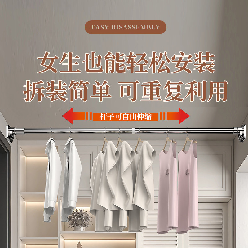 德国免打孔伸缩晾衣杆阳台固定晾衣架窗帘杆衣柜卫生间撑杆挂杆子