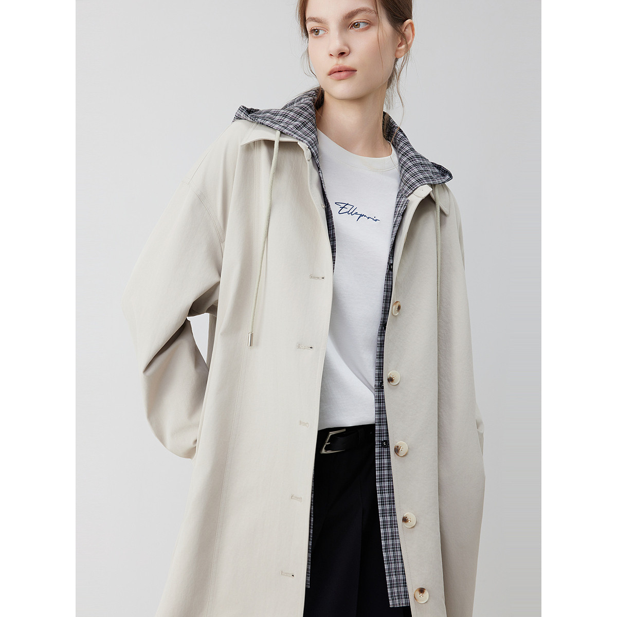 【巴黎旧梦】ELLE学院格纹长款风衣女2025秋季新款廓形高级感外套