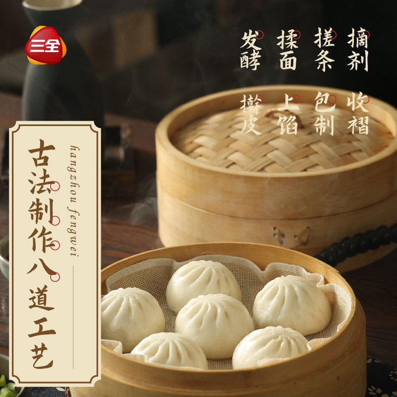 三全上海鲜肉三鲜风味早餐灌汤小笼包发面杭州小笼包