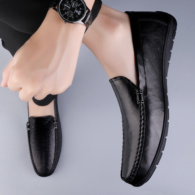 豆豆鞋男士春夏季潮流一脚蹬懒人皮鞋圆头真皮软底驾车鞋时尚男鞋