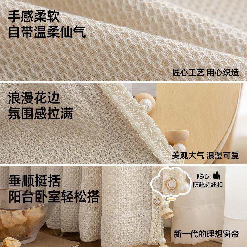 新款织影纱窗纱奶油风客厅阳台加厚飘窗窗帘透光不透人窗帘成品纱