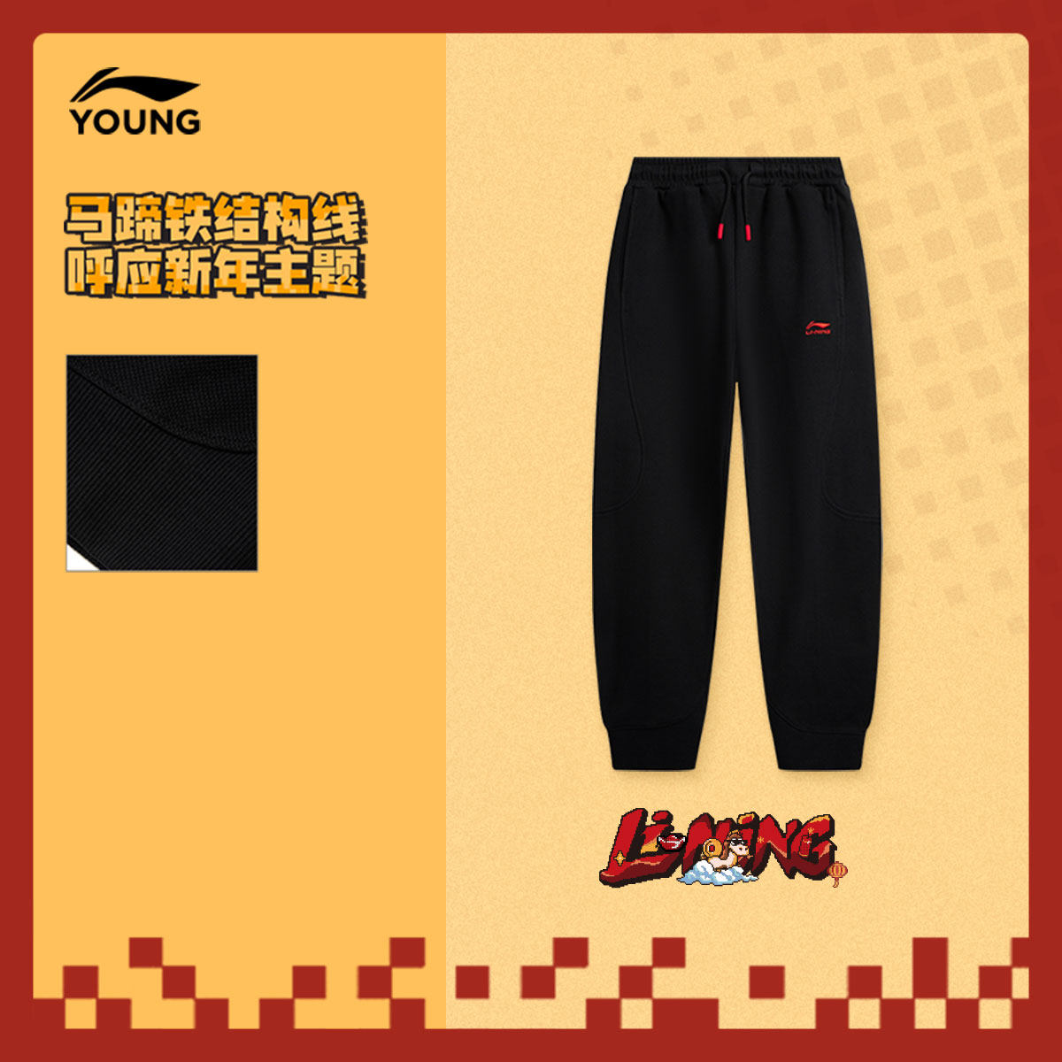 李宁童装卫裤女大童运动生活系列青少年宽松春季休闲束脚针织童装