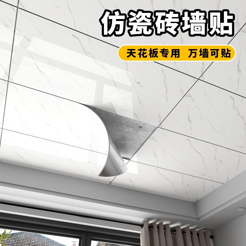 天花板贴纸自粘吊顶自装屋顶墙贴遮丑装饰防水卫生间仿瓷砖大理石