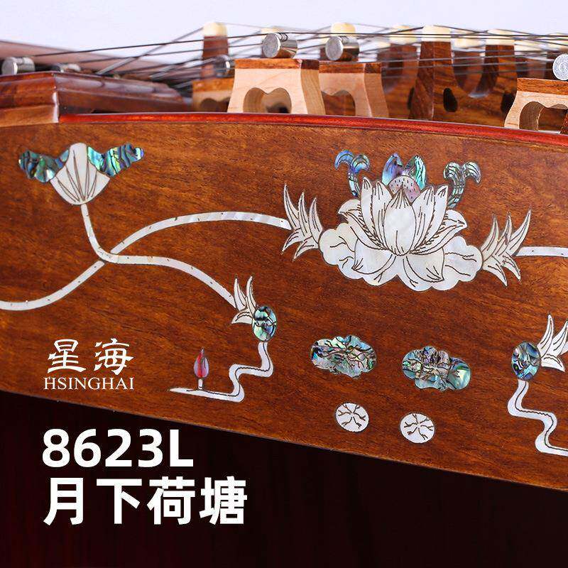 北京星海扬琴8623L大果紫檀木贝雕月下荷塘402扬琴老花梨木杨洋琴