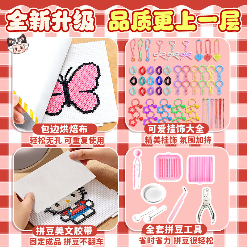 拼豆手工diy材料包女孩玩具全套工具套装融合豆笔熨斗拼豆大礼包