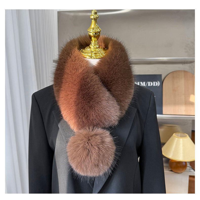 狐狸毛围巾冬季女双面加厚保暖百搭毛球獭兔毛围脖领子皮草毛领