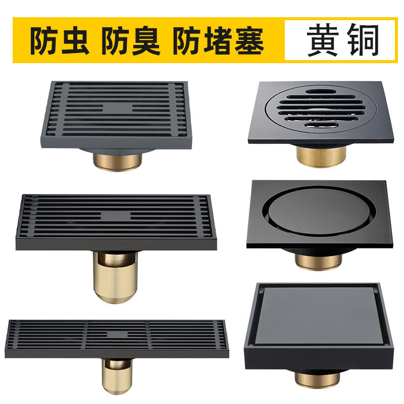 卫生间黄铜防臭地漏隐形双用长方形淋浴房洗衣机下水黑色两用地漏