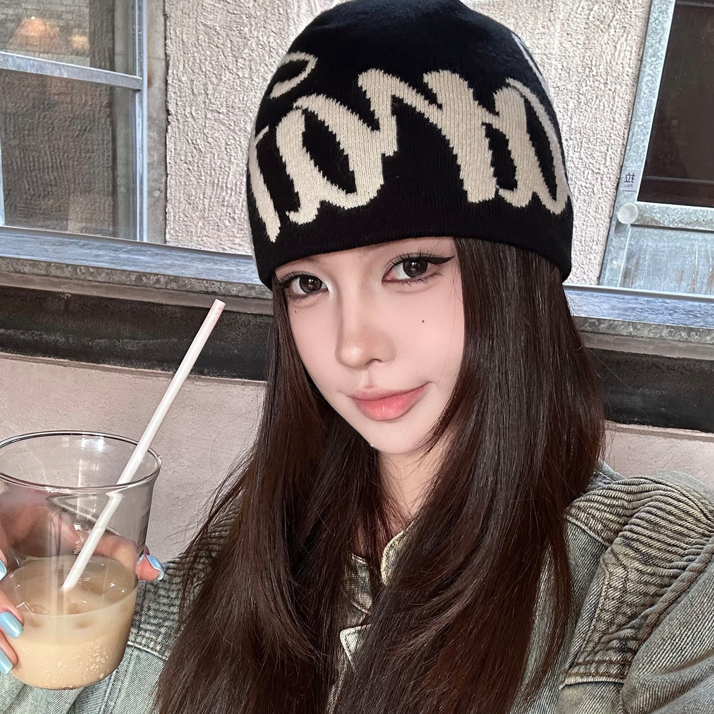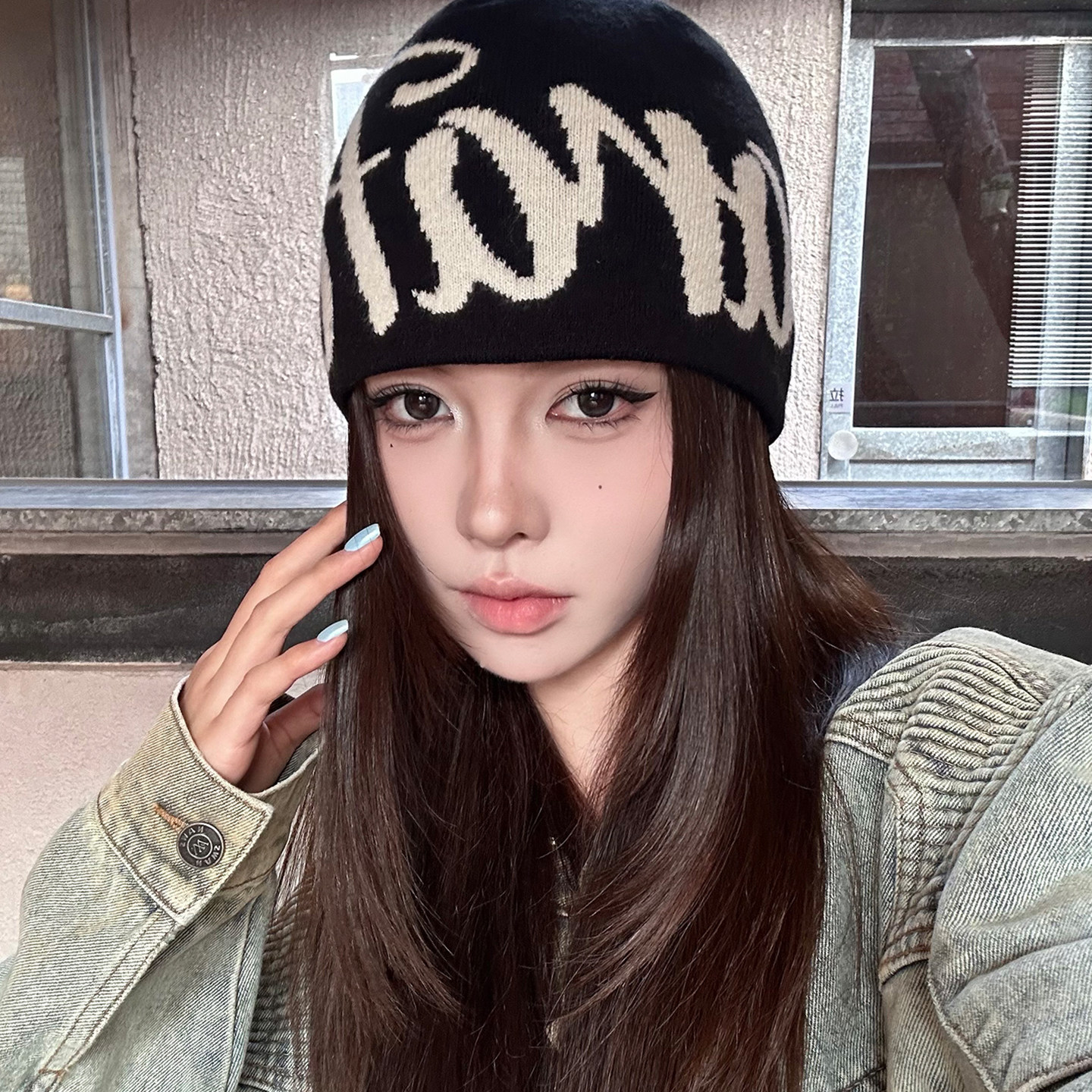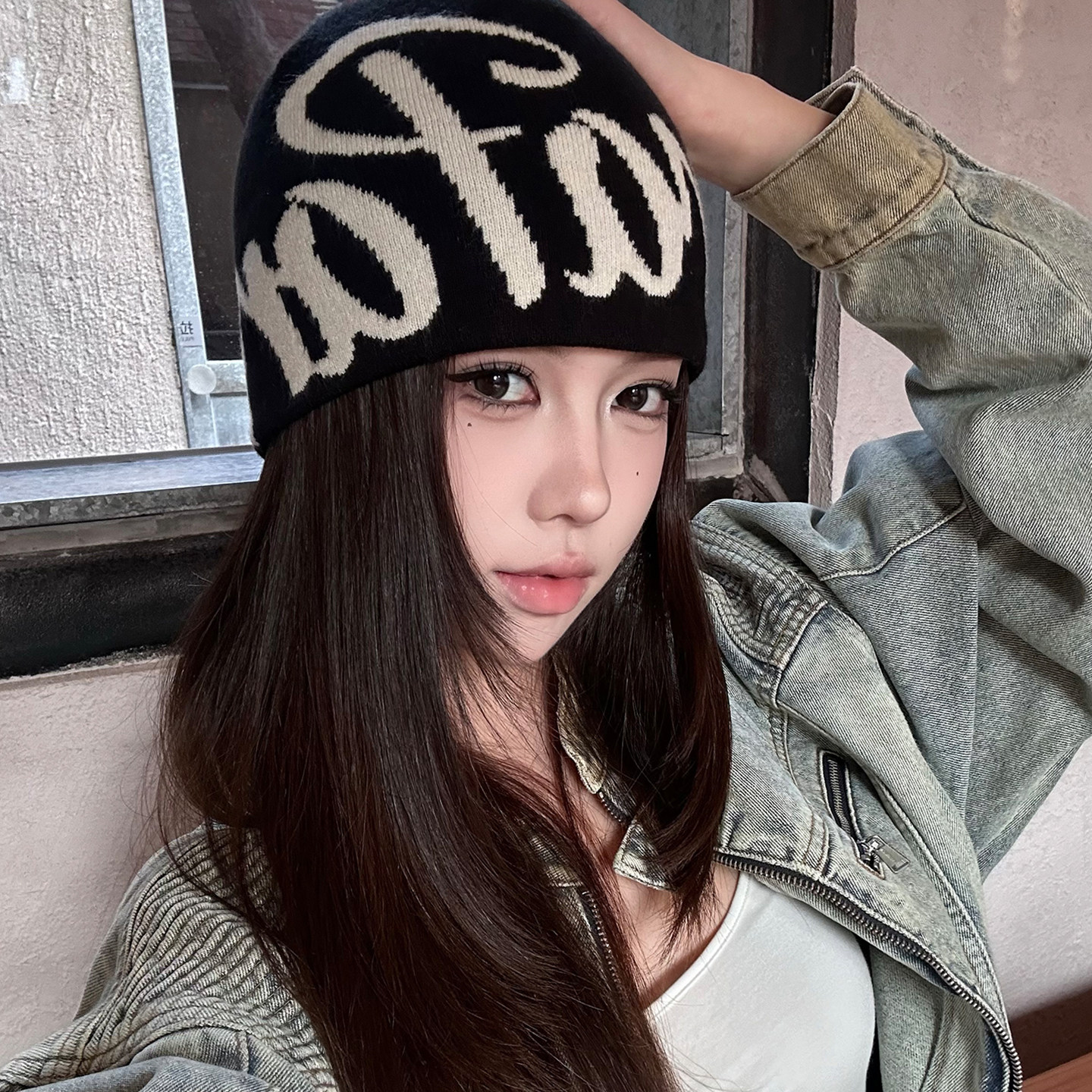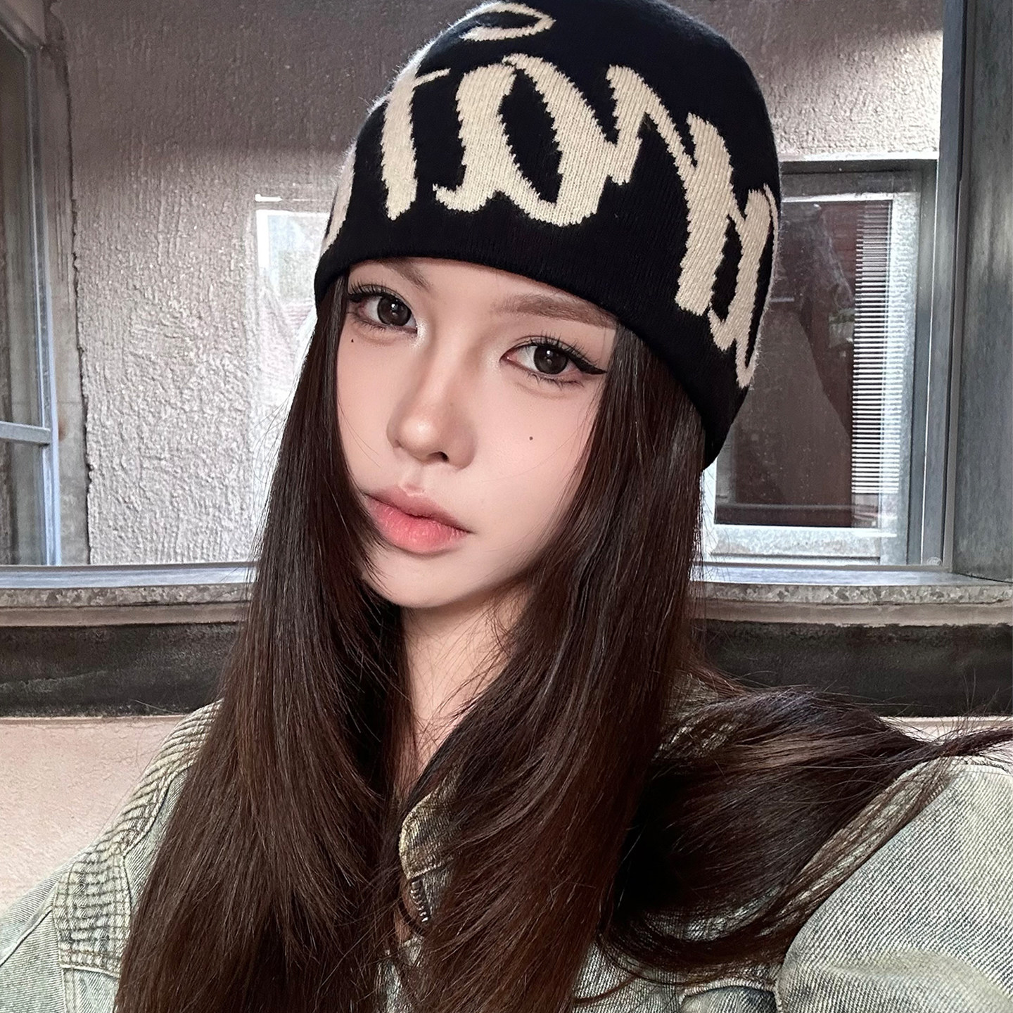 美式字母针织帽子女款2026新款登山帽防寒保暖套头显脸小包头冷帽