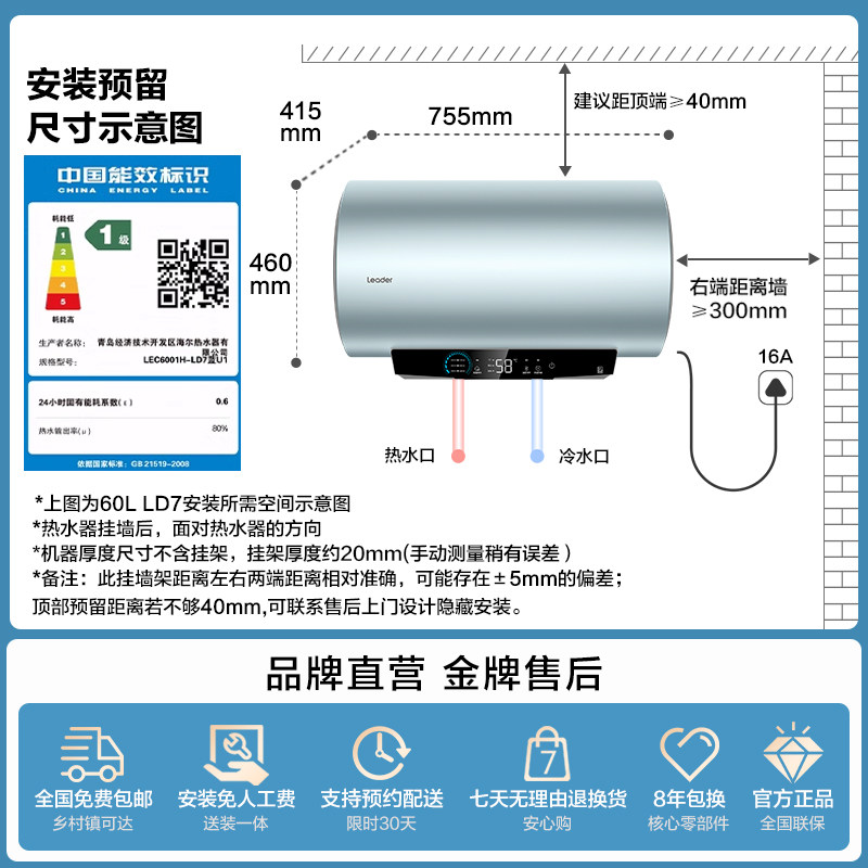 海尔出品统帅电热水器家用储水洗澡一级能效速热节能LD7