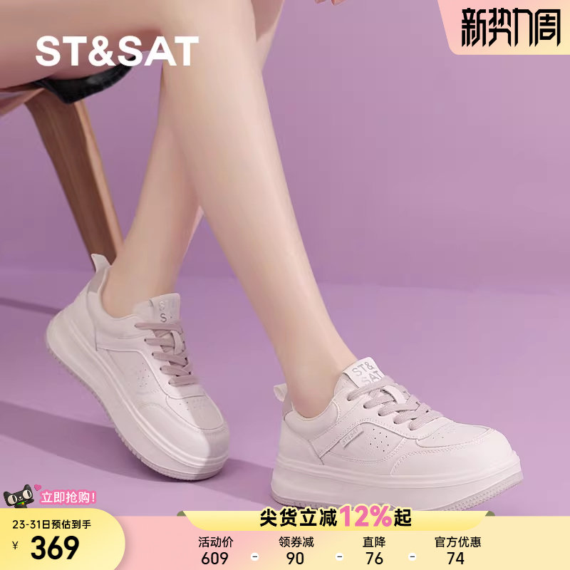 星期六厚底小白鞋女春季新款透气松糕底运动鞋女士增高休闲板鞋直