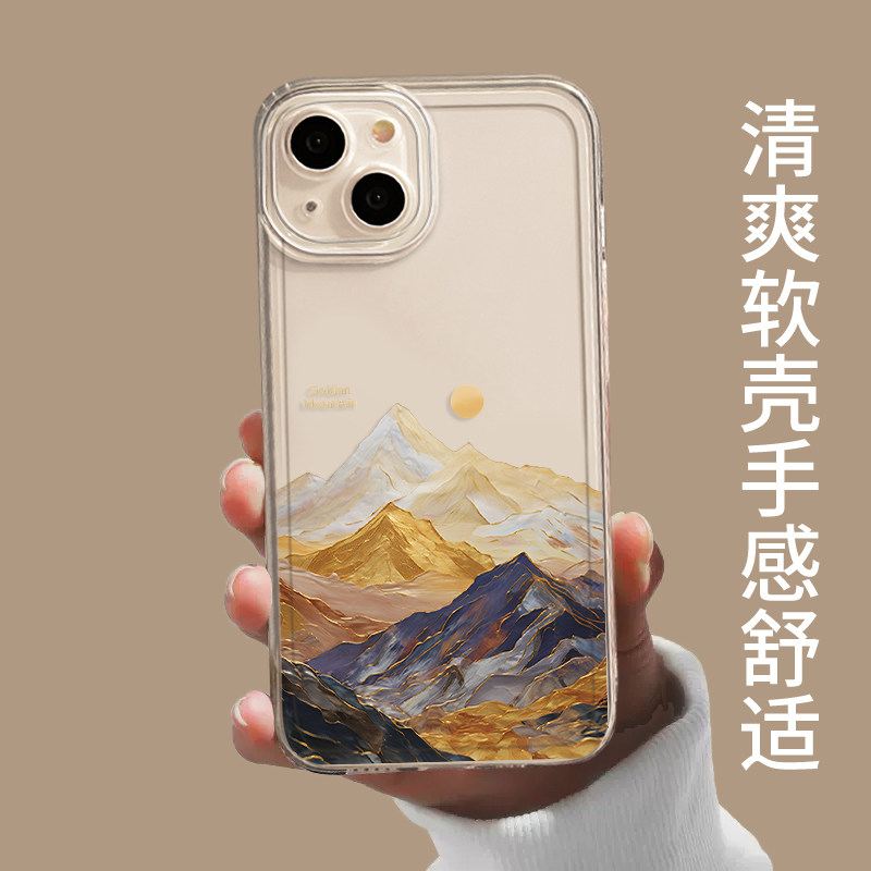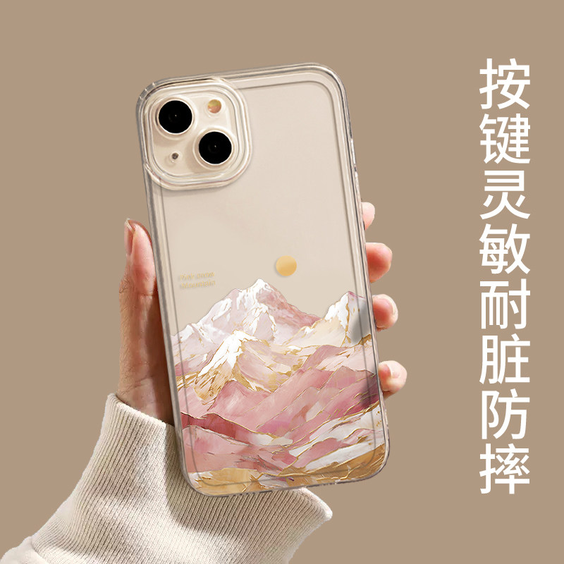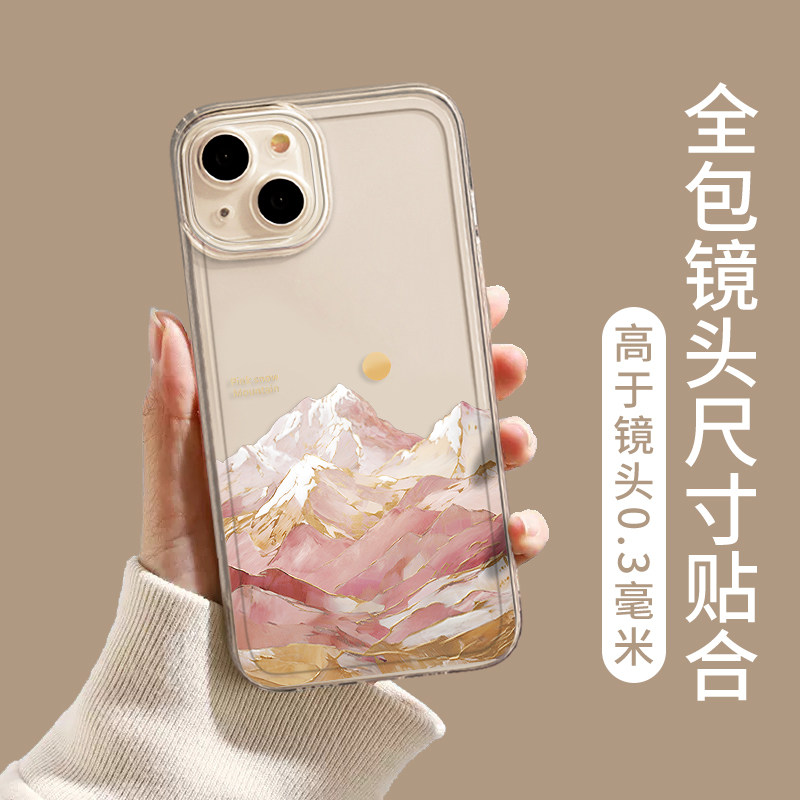 油画日照金山手机壳适用苹果17air/16沙漠金iphone15promax艺术感14plus情侣13mini透明12新款11/x/8/xr/xs/7