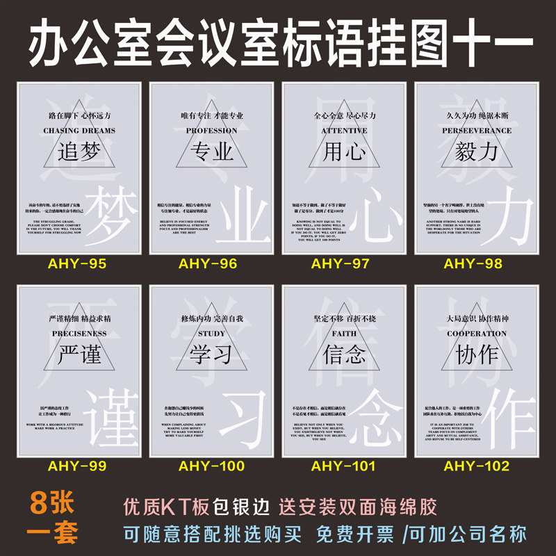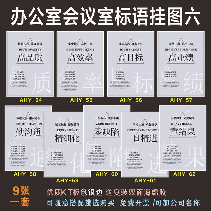 会议室KT板挂图标示会必议议必决言必行行必果办公室励志标语海报