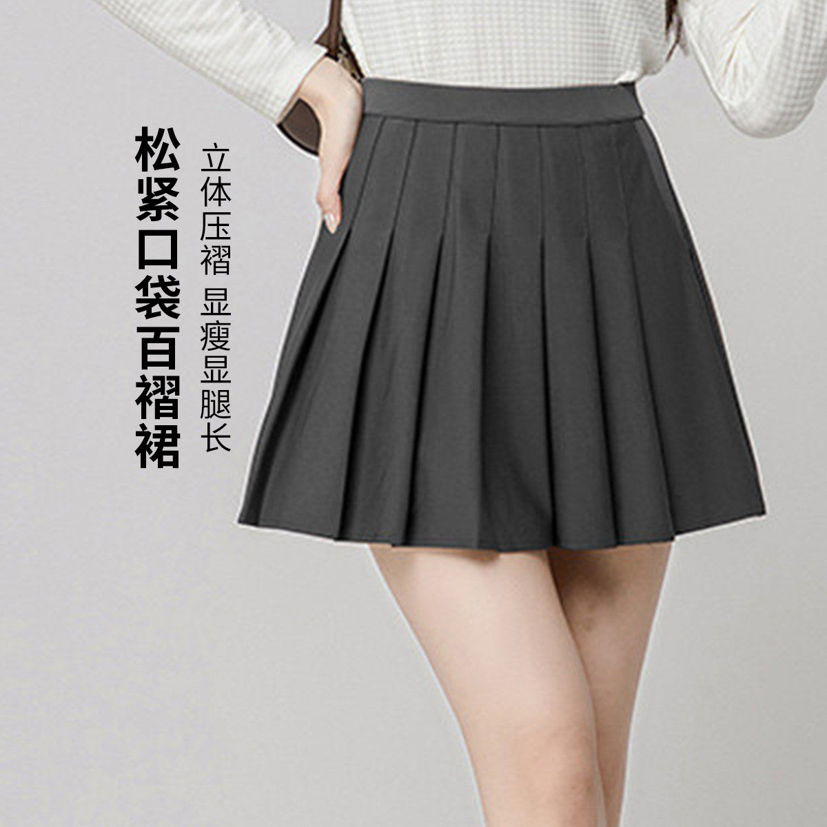 one more2026年春季学院风高腰百褶短裙女A字半身短裙少女显瘦