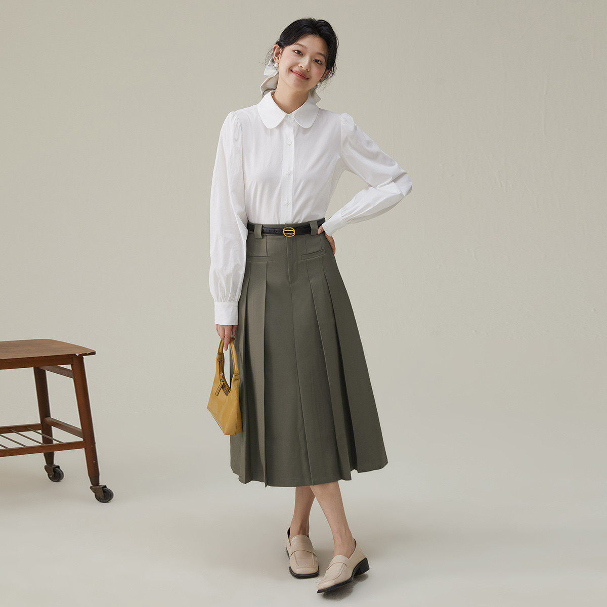 她池松紧腰百褶裙2025秋装新款女装时尚简约中长款A字高腰半身裙